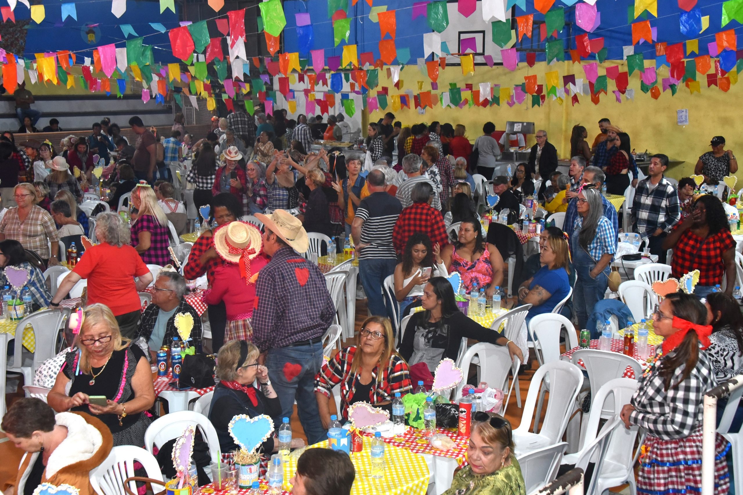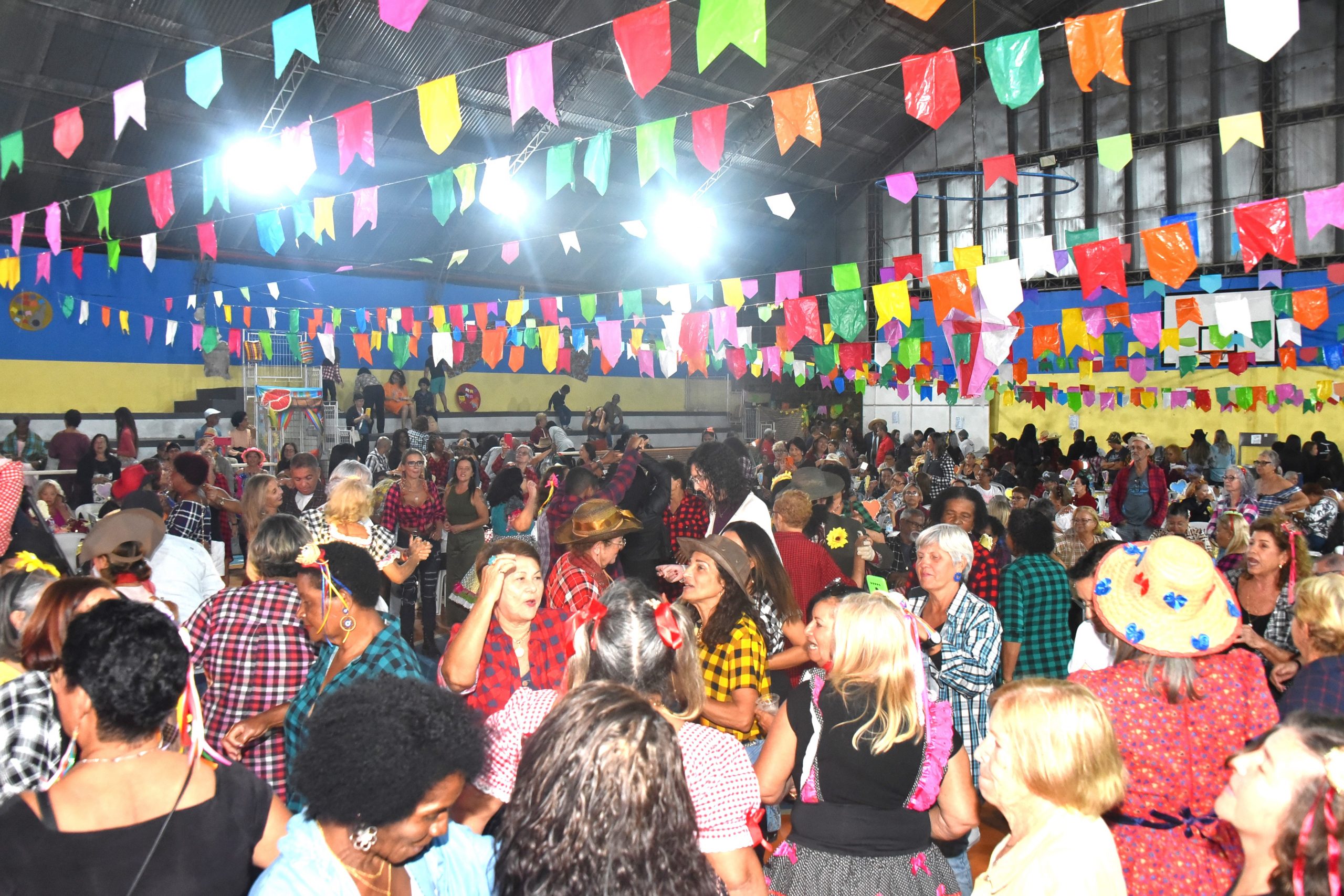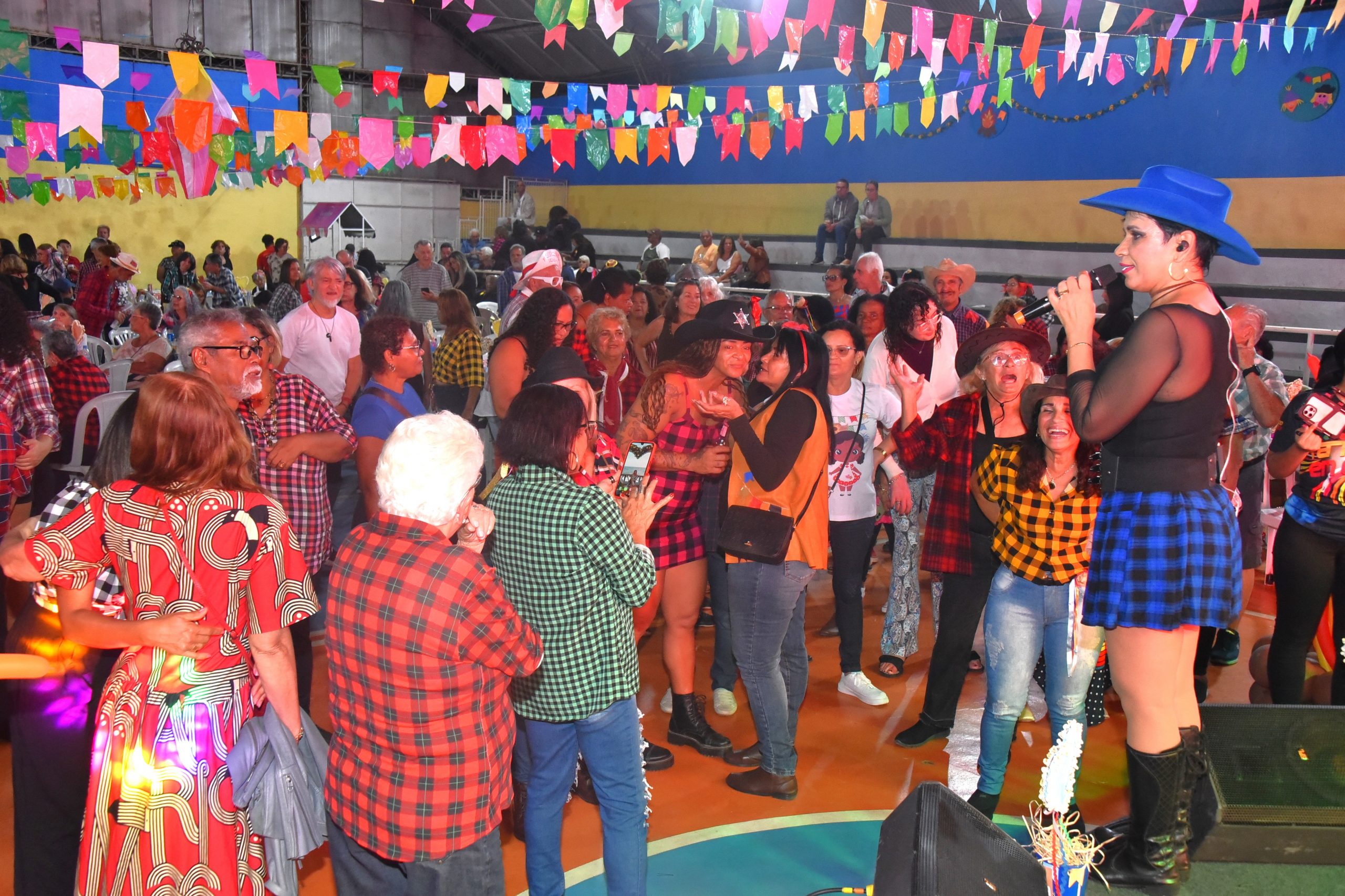 A Prefeitura de Maricá, por meio da Secretaria de Políticas para a Terceira Idade, promoveu nesta sexta-feira (18/07), o “Arraiá da Mió Idade” no Campus de Educação Transformadora (CEPT) Zilca Lopes da Fontoura, no Centro. A festa, que contou com decoração de festa julina e foi aberta ao público, reuniu mais de 600 pessoas para curtir o show da Banda ‘Tá Tudo em Casa’, com um repertório bem variado de forró e pé de serra.