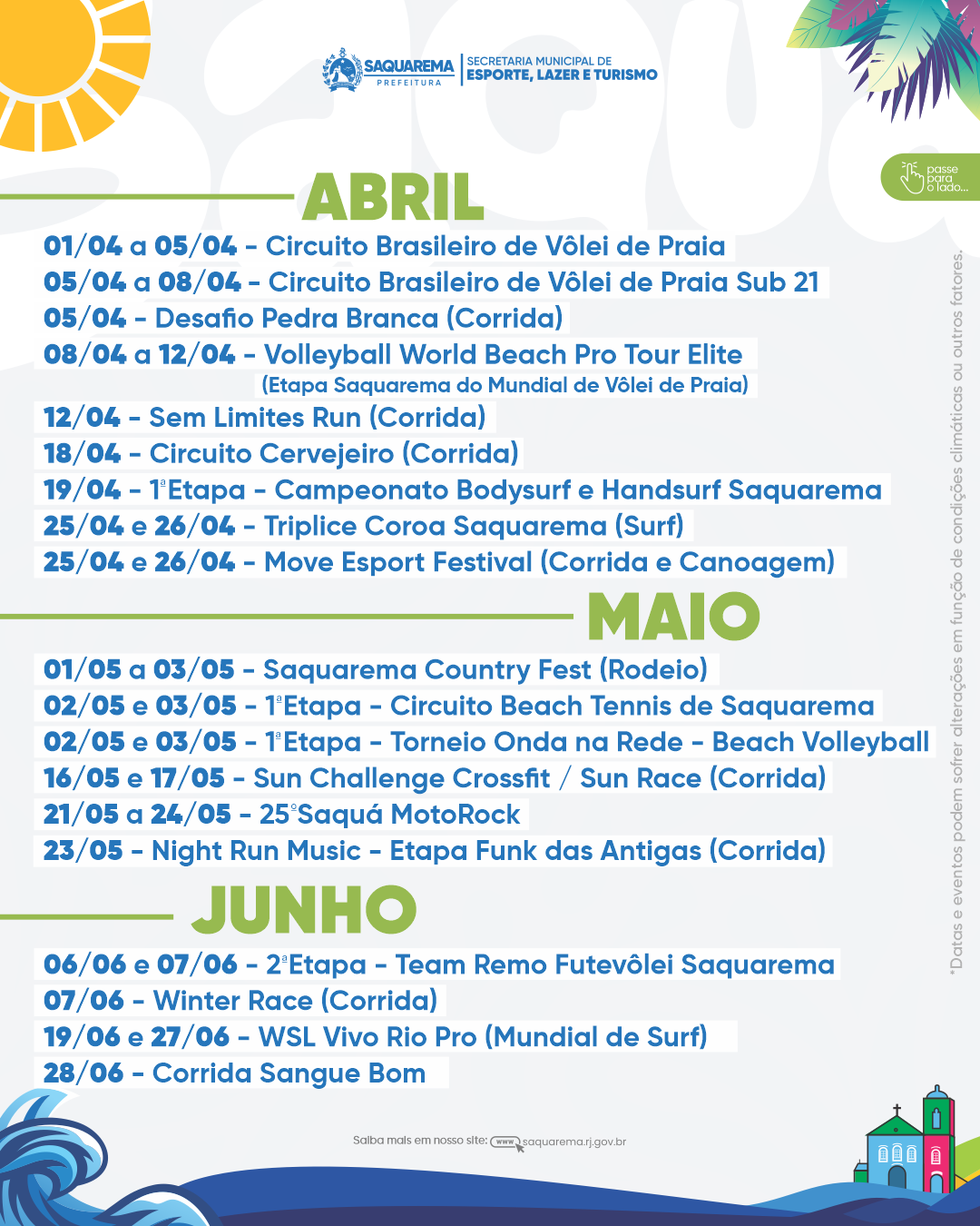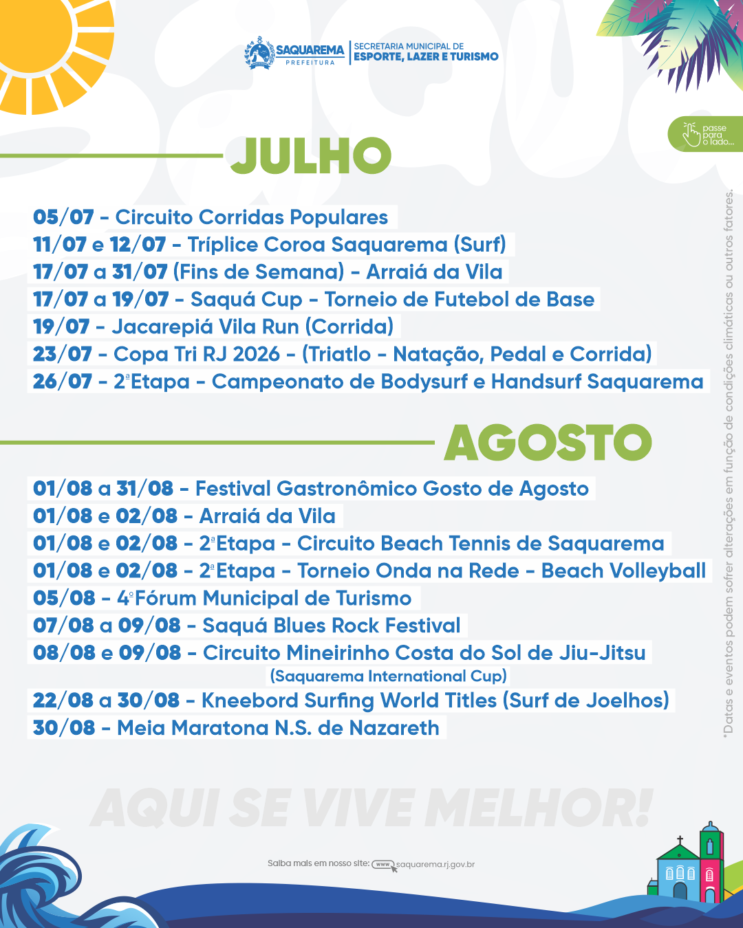 A prefeitura informa que o calendário poderá passar por ajustes ao longo do ano, de acordo com a dinâmica dos eventos.