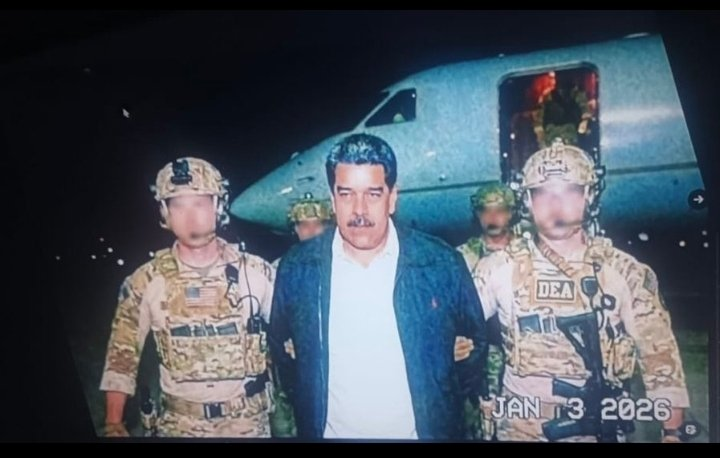 Foto de Maduro capturado, divulgada na internet, mas ainda não confirmada como oficial pelo governo americano.