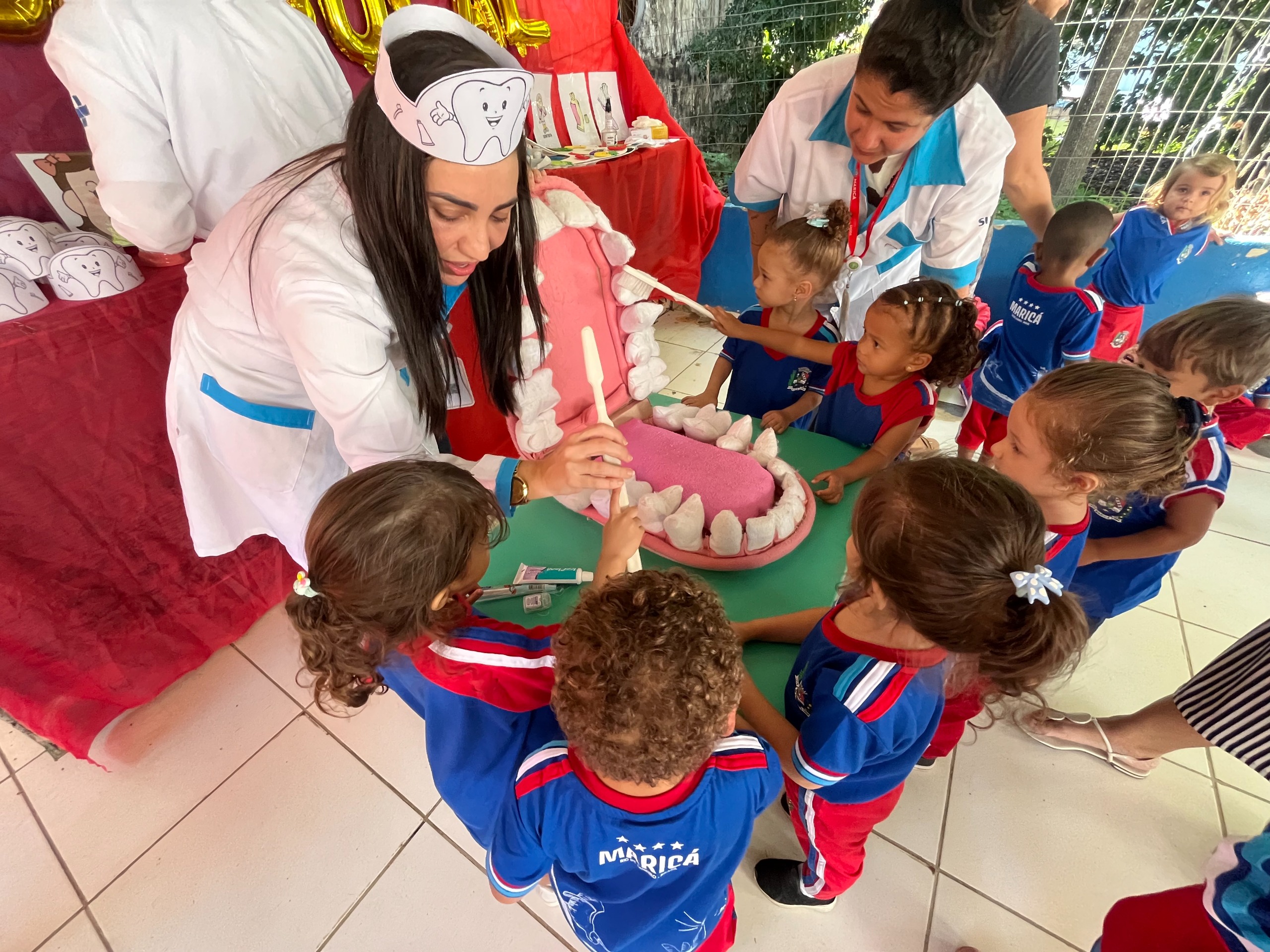 A Prefeitura de Maricá, por meio das secretarias de Saúde, Educação e da subsecretaria de Odontologia, atendeu 463 crianças na segunda-feira (19/05) durante o Dia “D” de Saúde Bucal nas escolas municipais. A atividade aconteceu em 23 unidades de ensino, presentes nos quatro distritos da cidade, fortalecendo a higiene bucal do público infantil através de orientações e conscientização sobre a importância da escovação, aplicação de flúor, realização de tratamento restaurador atraumático (TRA), além da entrega de kits odontológicos.