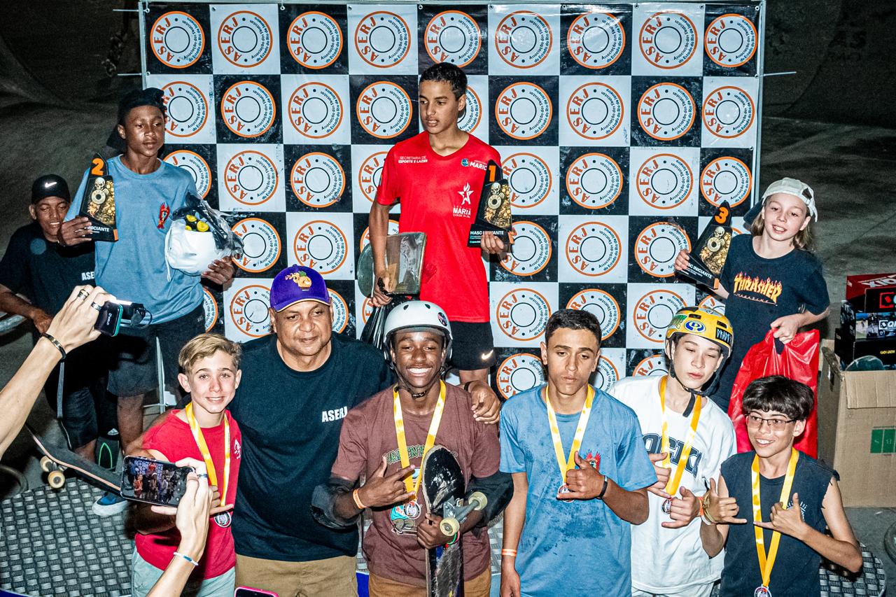 A Prefeitura de Maricá, por meio da Secretaria de Esportes, celebrou mais uma conquista dos jovens talentos do projeto Maricá Cidade Olímpica. No último sábado (02/08), a equipe representou o município na Etapa Campo Grande do Campeonato Estadual de Skate, promovido pela Associação de Skateboard do Estado do Rio de Janeiro (ASERJ), na modalidade Park.