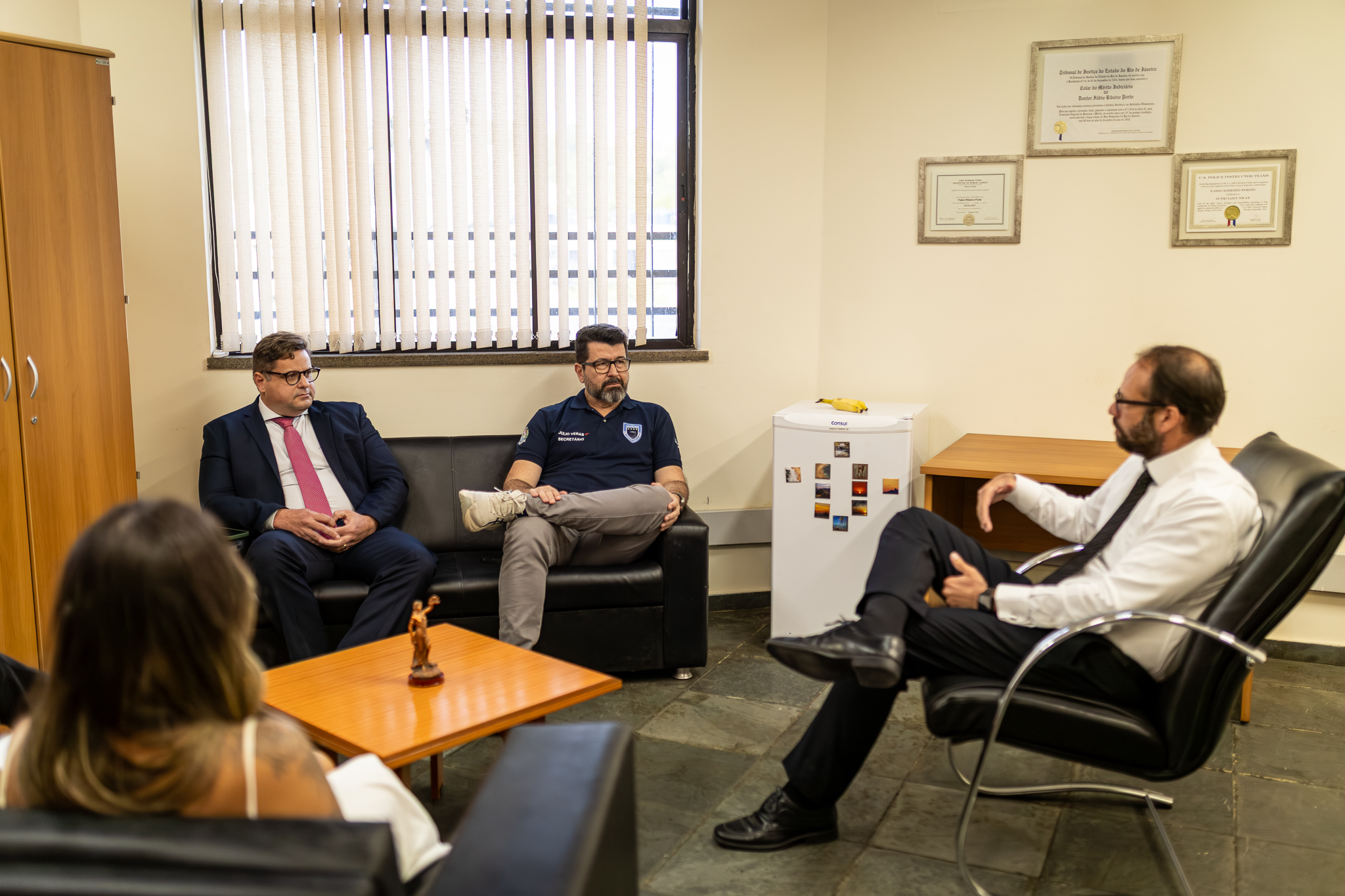 O encontro foi conduzido no gabinete do juiz Dr. Fábio Porto, da 2ª Vara Cível, com a presença do secretário de Justiça e Cidadania, Eduardo Carlos de Souza; do secretário de Segurança Cidadã, Júlio Veras; e de Adriana Crespo, responsável pela Central de Mandados. Um dos principais avanços discutidos foi a ampliação do apoio da Guarda Municipal – especialmente por meio do Grupamento Maria da Penha – aos oficiais de justiça responsáveis pela execução dos mandados judiciais.