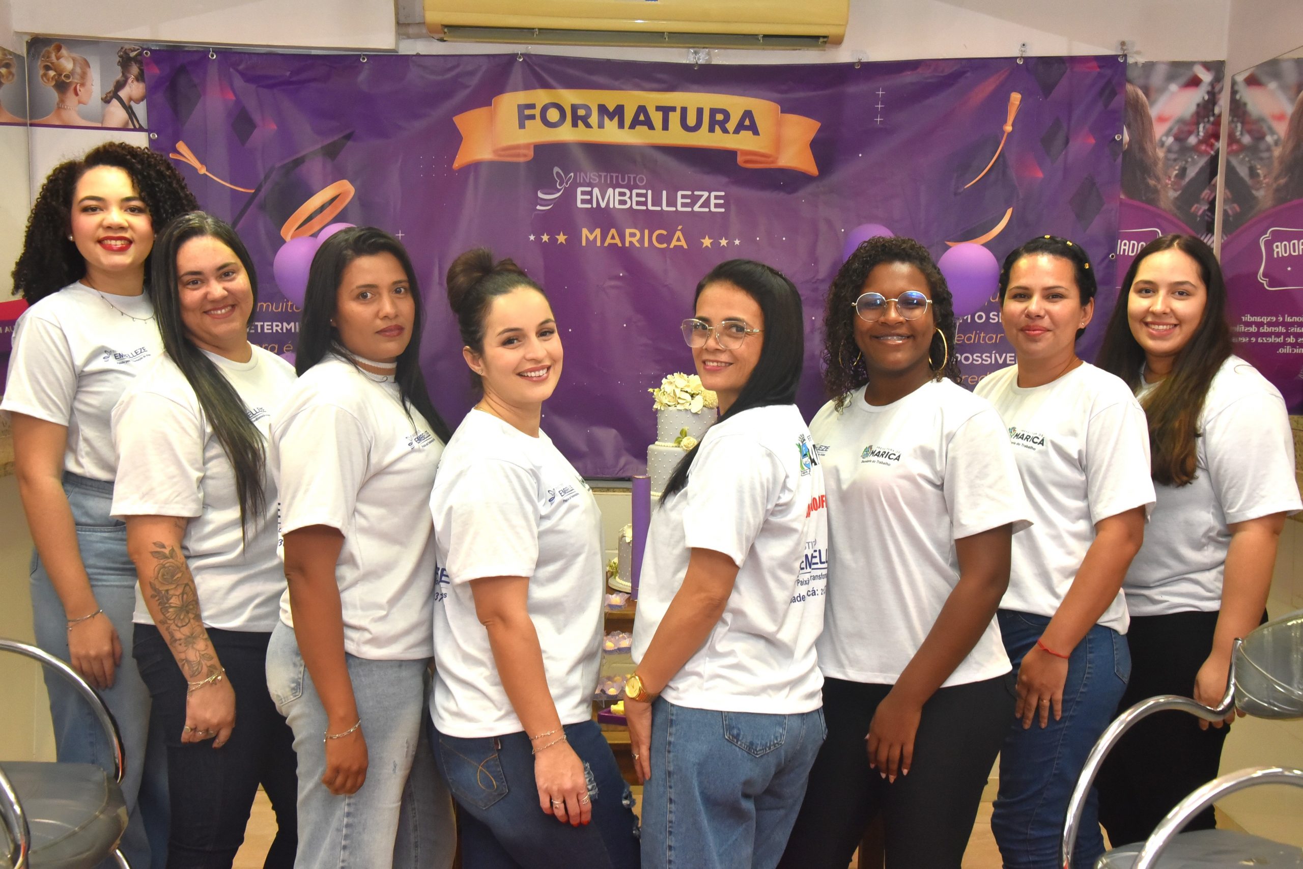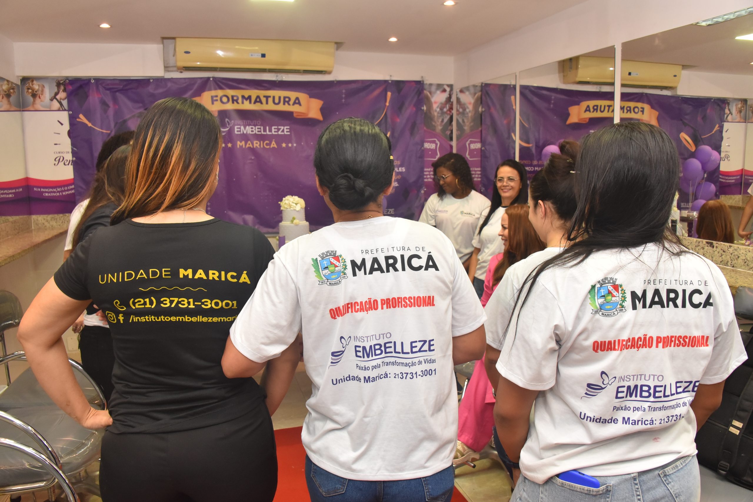A Prefeitura de Maricá, por meio da Secretaria de Trabalho e Emprego, concluiu nesta quinta-feira (17/07) mais uma turma do Programa de Qualificação Profissional, desta vez com participantes do curso de penteados do Instituto Embelleze. A cerimônia de formatura aconteceu na sede do instituto, no Centro, e reuniu alunas e professoras para a confraternização e entrega de certificados.