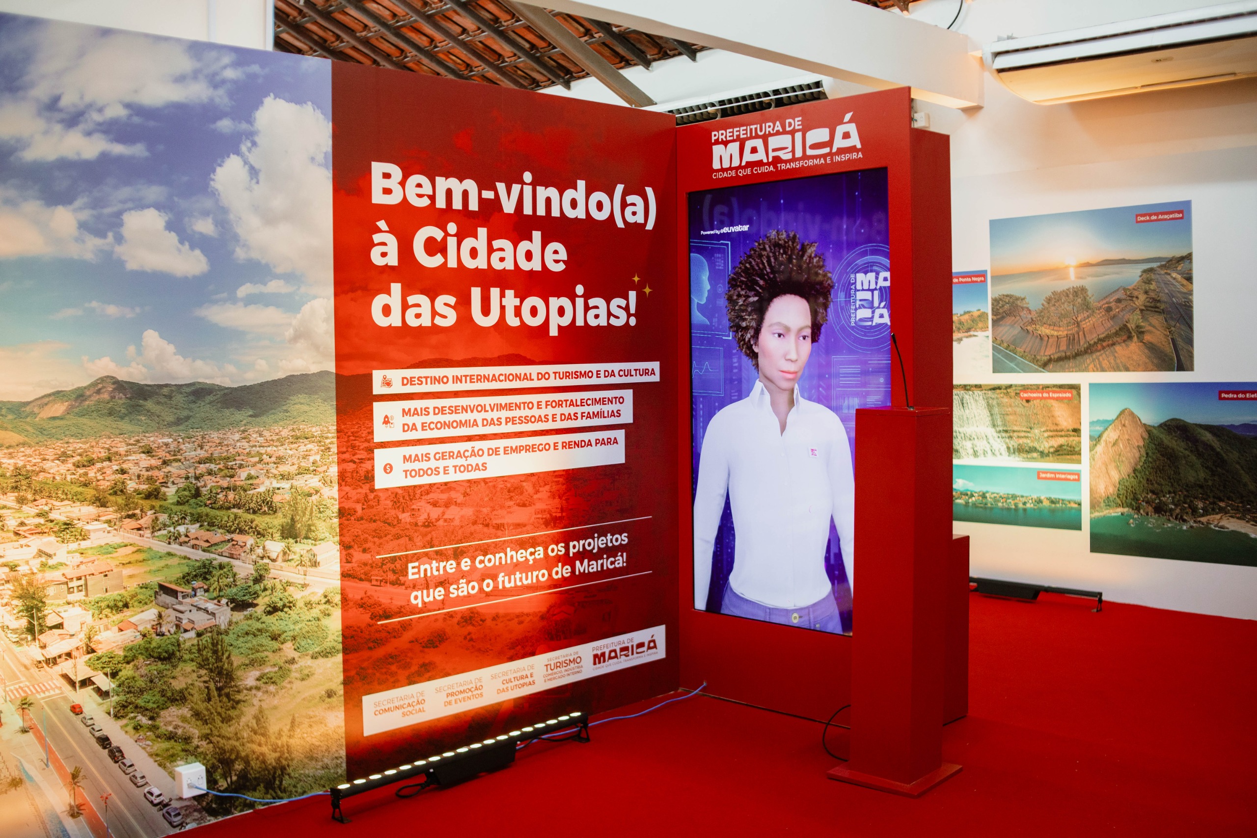 Uma série de ações está acontecendo na Praça Orlando de Barros Pimentel. A lateral da Casa de Cultura recebeu ‘capsulas do tempo’ com inteligência artificial (IA) em formato de portas, além dos diversos produtos apresentados pela Companhia Alimentos de Maricá (Amar).